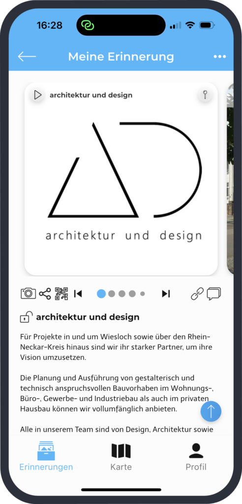 With the QR code all interested parties become followers and are automatically informed when there is something new: with every new photo, video or comment, everyone is included!