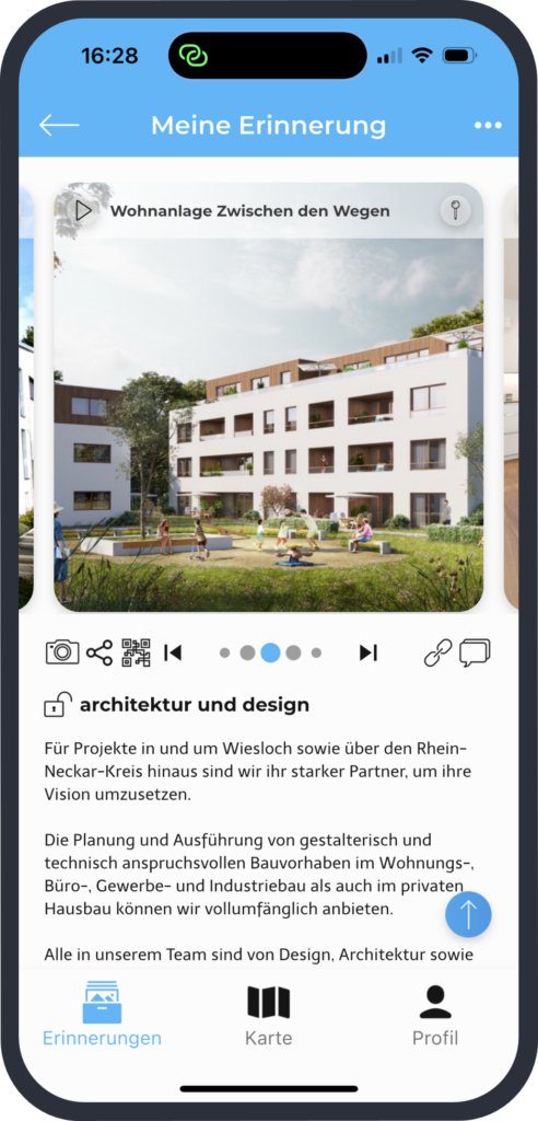 And if desired, a building project can be documented from A to Z for the client and used as a lasting memory of the house construction. Without being on the building site, you can see the progress of the construction work immediately. And later on, you’ll know where all the cables and pipes are …